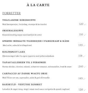 Klik på billedet af menukortet og se vores aften menukort med traditionelle og spændende nye retter.